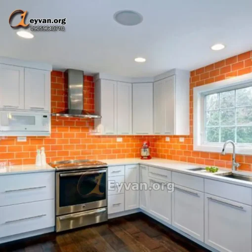 کاشی بین کابینتی (Backsplash): محبوبترین کاربرد این کاشی، پوشش دیوار بین کابینتهای آشپزخانه و هود است. از پاشیدن روغن و لکه جلوگیری کرده و زیبایی خاصی به فضای کار شما میبخشد.